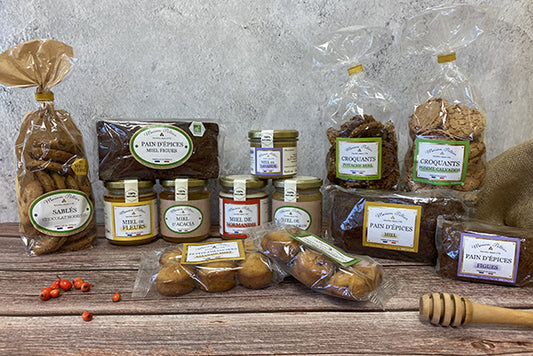 Confiseries, biscuits, miels