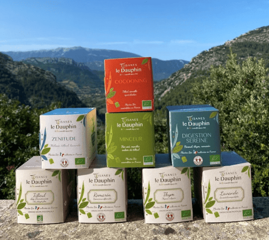 Des tisanes bio et origine France !Tisanes le Dauphin est une entreprise familiale engagée dans les plantes aromatiques et médicinales locales et la Bio depuis 70 ans en Drôme Provençale.