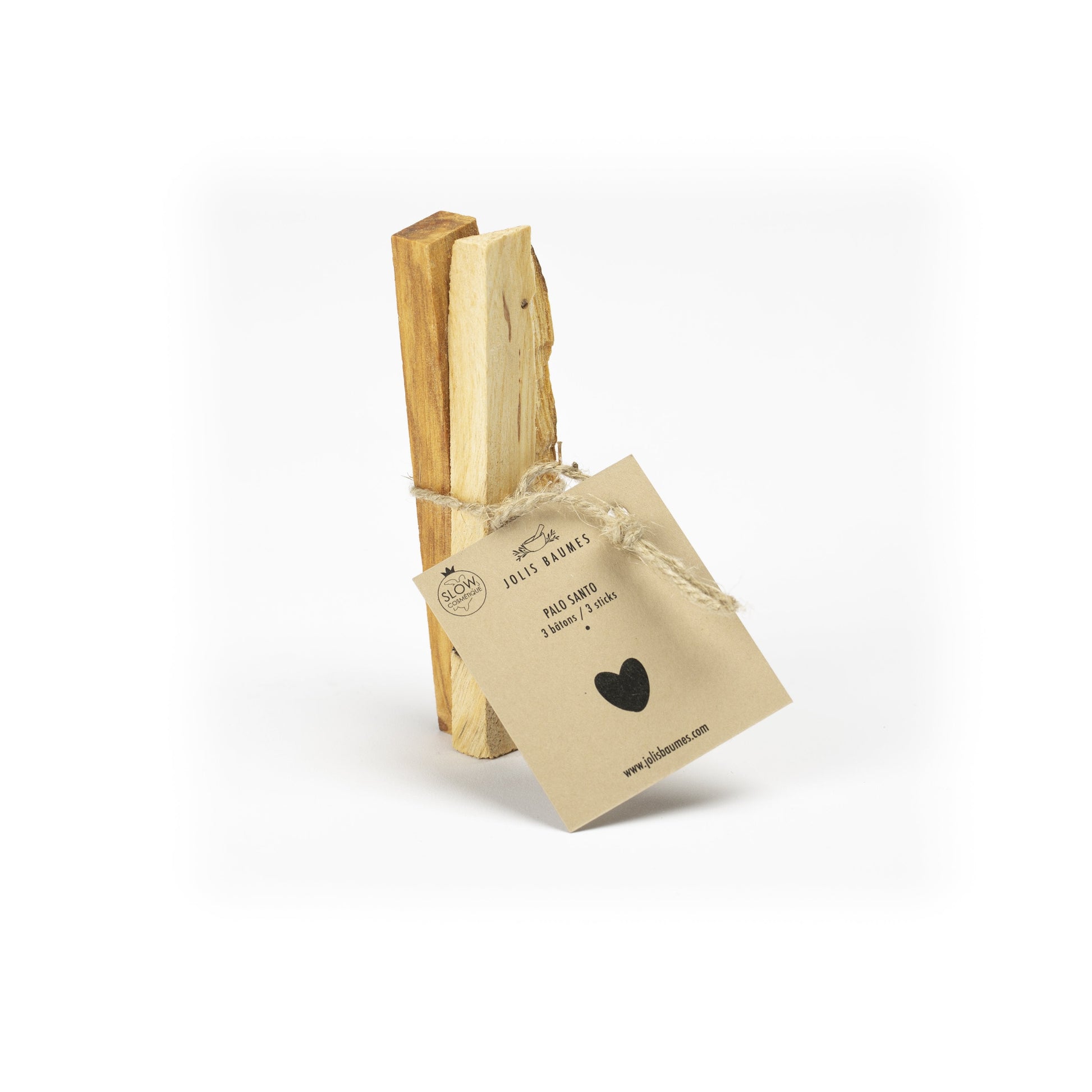 Fagot de 3 bâtonnets de Palo Santo de 10 cm, relié par une ficelle naturelle.